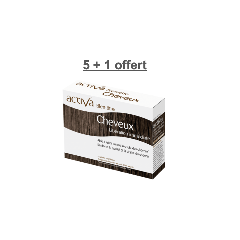 Aide à lutter contre la chute des cheveux Favorise la repousse et la croissance. Renforce la qualité et la vitalité du cheveu. Bien-être Cheveux convient aux femmes et aux hommes. 45 gélules