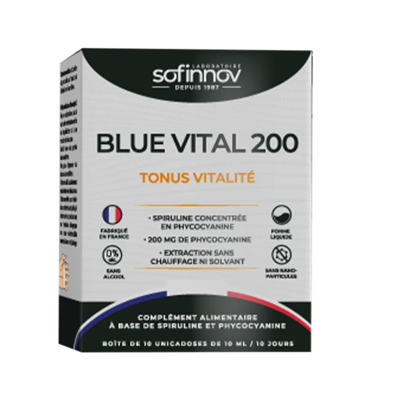 BLUE VITAL' est un produit exceptionnel riche en phycocyanine active, protéine majeure extraite de la Spiruline, aux propriétés antioxydantes, antiradicalaires et immunostimulantes, 6000 à 7000 fois plus active que la Spiruline elle-même et 20 fois plus puissante que la vitamine C.