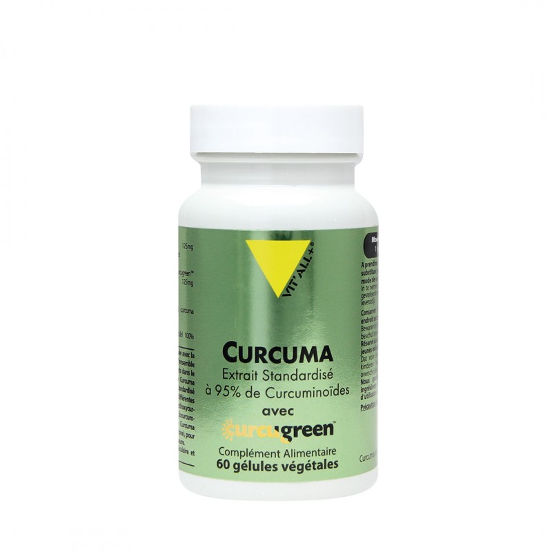 Curcuma longa – Rhizome – Extrait standardisé à 95% de total curcuminoïdes complexe, 86% de curcuminoïdes et 5 % d’huile essentielle (ar – turmérone) – forme optimisée Curcugreen®
