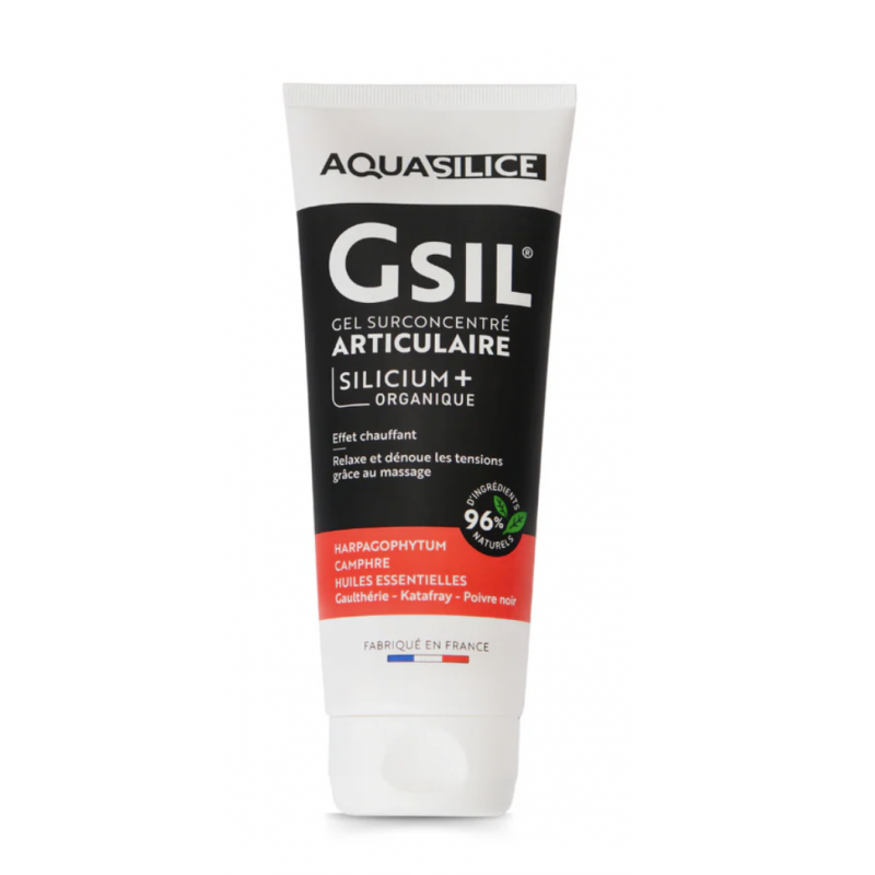 GSA gel surconcentré articulaire plus concentré en Silicium Organique, Harpagophytum, Huiles essentielles de Gaulthérie, de Katafray et de poivre noir, contre les douleurs articulaires.