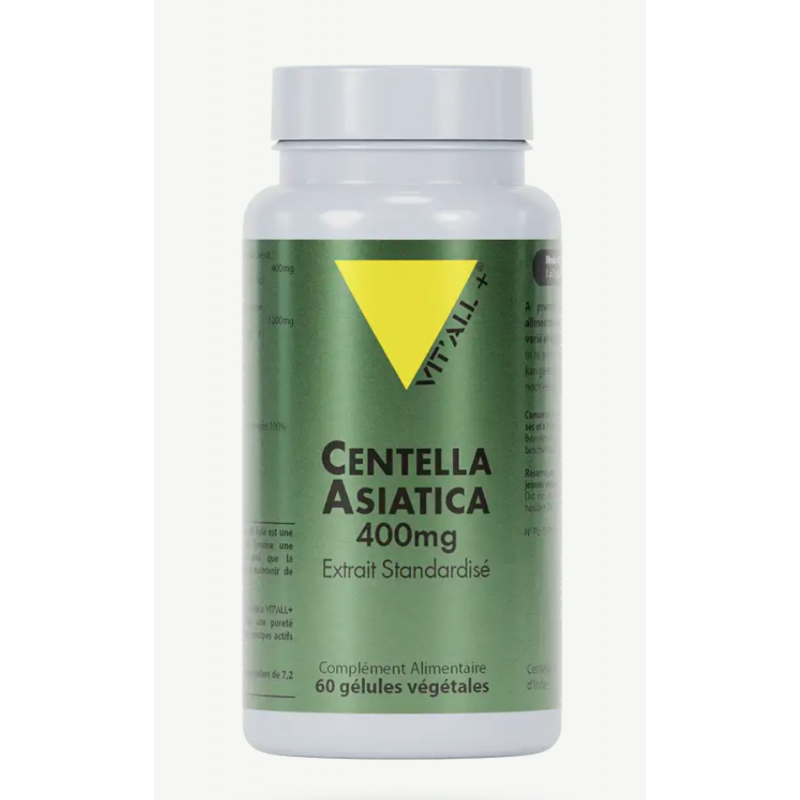 L’Extrait Standardisé de Centella asiatica VIT’ALL+® garantit une stabilité de dosage et une concentration en principes actifs supérieure à la poudre de plante (cela équivaut à 7,2g par gélule).